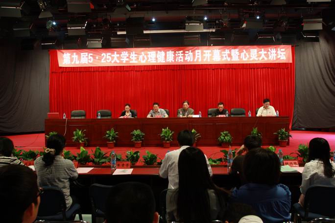 4月27日下午,我校第九届5.25大学生心理健康活动月开幕式在文传系演播厅隆重举行。本次活动特邀福建师范大学心理学系博士生导师程利国教授做专题报告。学工部、团委、计算机系等负责人、全校专兼职辅导员,全体专兼职心理咨询师,大一、大二班级心理委员,校大学生心理健康协会学生干部约300余人参加了开幕式。
