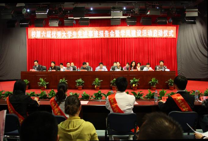 4月15日下午,我校第六届优秀大学生先进事迹报告会暨学风建设活动启动仪式在文传系演播厅举行。校学工部、团委负责人,各系党总支书记、副书记、分团委书记代表,全体专兼职辅导员及学生干部代表共300余人参加了会议。