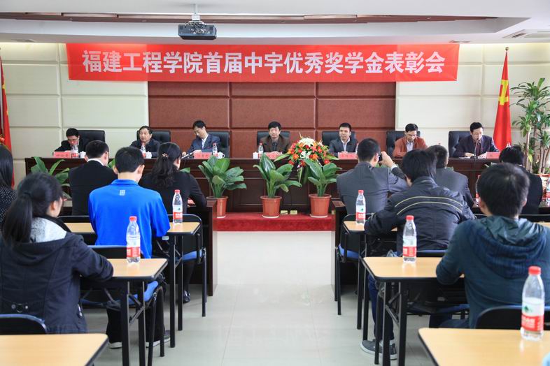 4月18日下午,我校在田家炳楼第二会议室召开福建工程学院首届中宇优秀奖学金表彰会。中宇建材集团有限公司总裁高级助理兼人力资源中心总监吴辉兴先生、副总监何清秀女士等四位企业代表,陈文哲副校长,教务处、机电系、材料系等部门、系部相关负责人莅临出席,学工处、团委等相关职能部门以及机电系、材料系教师、学生代表共200余人参加了表彰会。会议由教务处负责人主持。