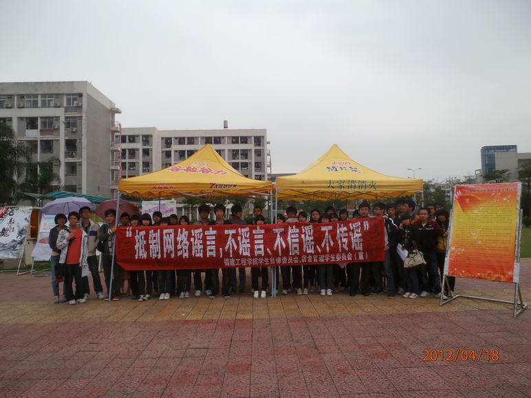 主题教育活动针对当前社会关注的网络安全问题,如大学生网络成瘾、网购受骗、网络失范,由于自身法律意识淡薄、辨别是非能力欠缺,不负责任地发帖、跟帖、灌水等现象,通过精心组织安排,充分利用宣传栏、海报、展板、横幅、院(系)刊等传统媒体和微博、博客、论坛及班级、年级QQ群等新兴媒体广泛宣传网络公约、有关法律法规。并通过组织学生签订《大学生文明上网承诺书》、召开“响应抵制网络谣言倡议”主题班会活动、观看青少年网络法制宣传片、在南北校区开展大型广场签名活动等形式,教育引导广大同学辩证看待网络的优劣点,增强是非辨别能力,主动拒绝网络谣言,做到理性上网、文明上网、安全上网,共同创设和谐的网络文化环境。