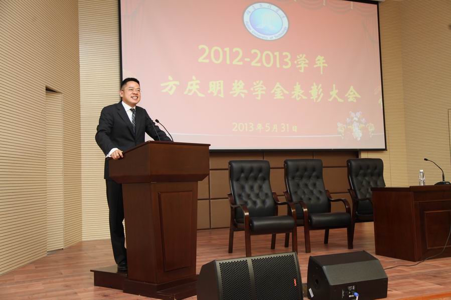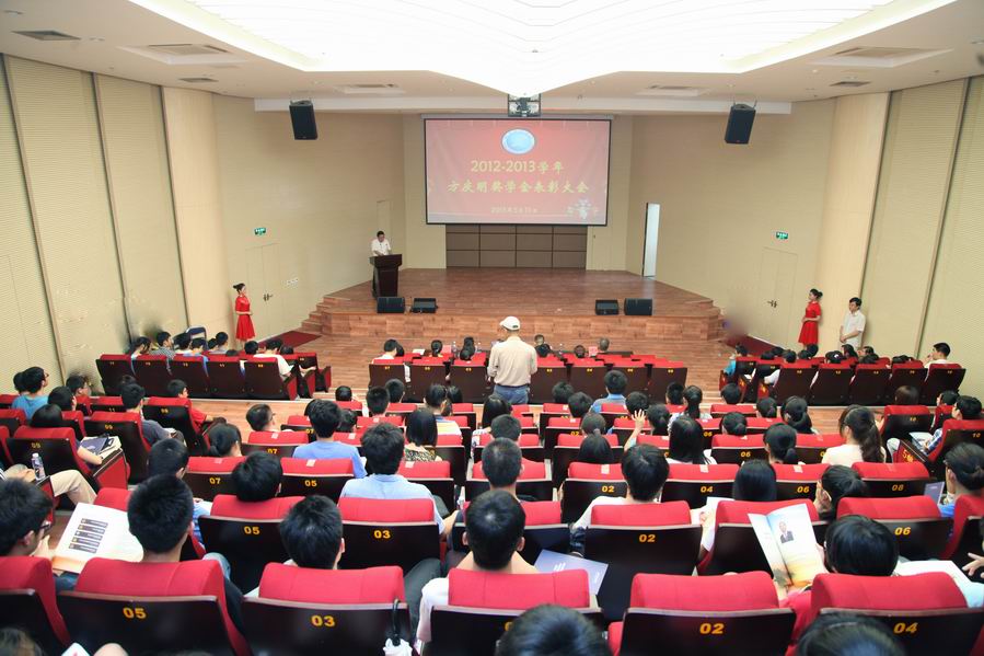 5月31日下午,我校2012-2013学年度方庆明奖学金表彰暨励志报告会在行政楼报告厅隆重召开。丰润金融控股集团有限公司董事局主席、我校杰出校友方庆明先生,校党委副书记李天奇,学工部、宣传部、校友会负责人,各院系党总支副书记、辅导员代表、获奖学生、师生代表共计300余人参加了大会。会议由学工部负责人主持。