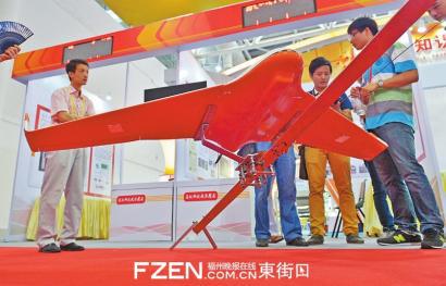 在高校成果展区,福建工程学院推出的低空测绘无人机吸引大家的眼球。现场一名老师介绍,这种无人机是福建工程学院的师生自主研发的,可在500米高度下以时速60公里~100公里飞行。