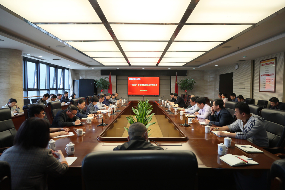 4月25日下午,学校在行政楼第一会议室召开“一站式”学生社区建设工作推进会。校党委副书记徐子青、校“一站式”学生社区建设领导小组成员、各二级学院党委副书记参加会议。