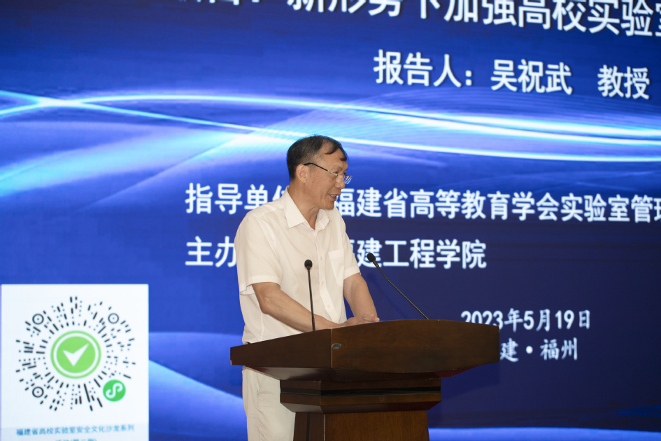 5月19日上午,由福建省高等教育学会实验室管理专业委员会指导的福建省高校实验室安全文化沙龙第二期活动在我校旗山校区学术报告厅举办。教育部实验室安全检查专家、中国矿业大学实验室与设备管理处处长吴祝武教授受邀作主题报告。副校长刘国买、校实验室技术安全工作委员会工作小组成员,各相关部门、二级学院及科研平台和项目负责人,实验教师、实验技术队伍等230多人现场参会,省内本科高校600多人通过线上同步收看。