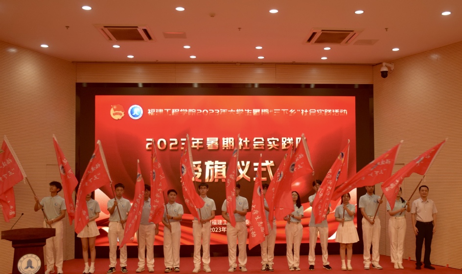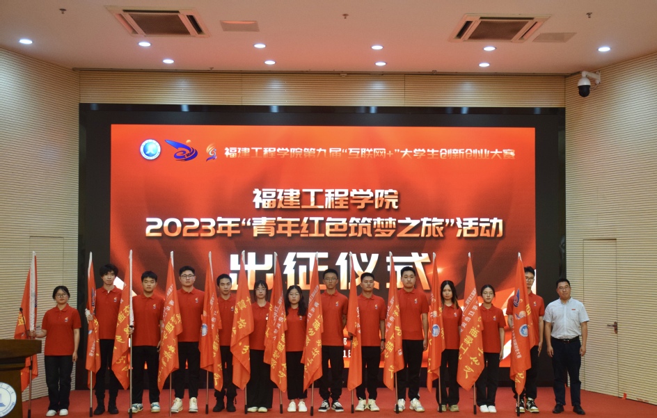 大赛结束后,现场举行了第九届福建工程学院“互联网+”大学生创新创业大赛“青年红色筑梦之旅”暨暑期社会实践活动出征仪式。仪式上,学生工作部、校团委负责人分别为“青年红色筑梦之旅”和暑期社会实践队授旗,团队代表做出征宣誓。(学工部、校团委、三创学院供稿)