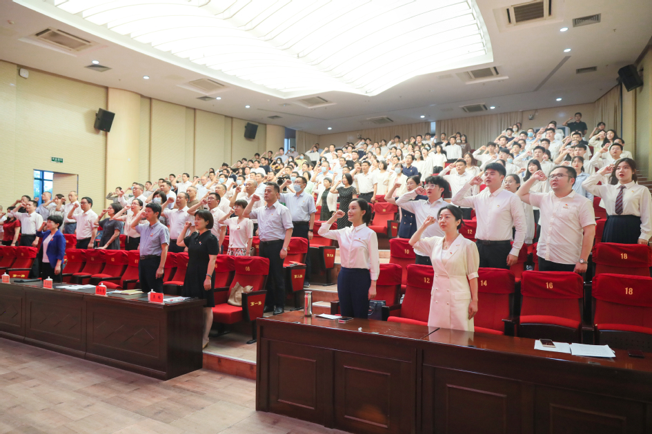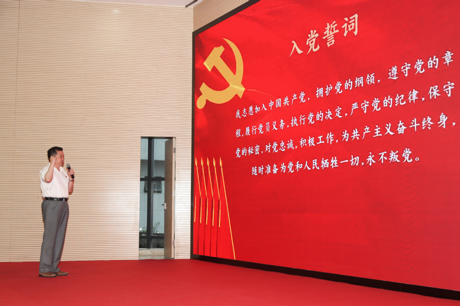 吴仁华带领全体党员集体宣誓,重温入党誓词并作讲话。他结合主题教育向党员提出三点要求:一要旗帜鲜明讲政治,坚定拥护“两个确立”、坚决做到“两个维护”;二要全面贯彻党的教育方针,推进落实立德树人根本任务;三要以高质量党建引领学校高质量发展。