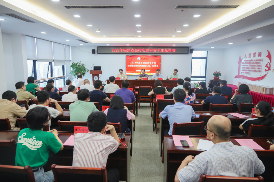 6月20日下午,省高校实验室安全检查组一行来校开展实验室安全专项检查,并在旗山校区行政楼第二会议室召开检查工作见面会及反馈会。副校长刘国买,实设处、办公室、学工部、教务处、科研处、研究生处、人事处、计财处、武保部、基建处、后勤处、信息中心等职能部门负责人,各二级学院分管实验室负责人和安全信息员参加会议。
