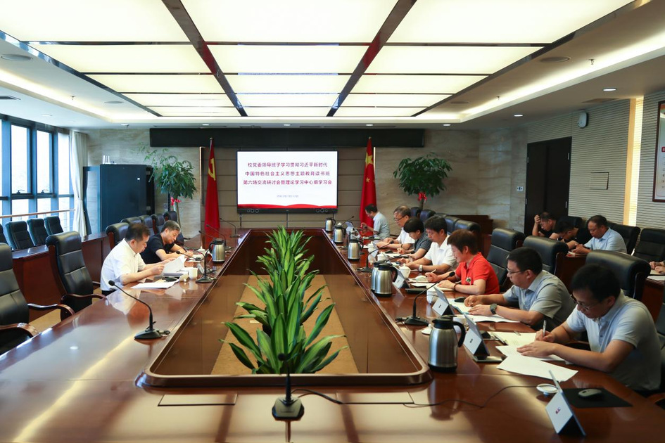 7月13日上午,校党委领导班子学习贯彻习近平新时代中国特色社会主义思想主题教育读书班第六场交流研讨会暨理论学习中心组学习会在行政楼第一会议室举行。校党委书记、校党委学习贯彻习近平新时代中国特色社会主义思想主题教育领导小组组长吴仁华主持会议。校领导,办公室、纪委(监察专员办)综合室、组织部、宣传部、统战部、教师工作部·人事处、学工部等部门负责人参加会议。
