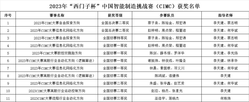 近日,由教育部国际合作与交流司指导,西门子(中国)有限公司、中国仿真学会等联合主办的第十七届“西门子杯”中国智能制造挑战赛创新设计赛全国总决赛在兰州理工大学落下帷幕。经过激烈角逐,我校学子凭借优异表现荣获全国总决赛二等奖2项,全国初赛特等奖1项、一等奖4项、二等奖3项、三等奖1项。