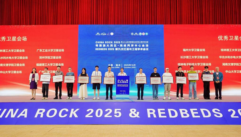 10月16日至19日,CHINA ROCK 2025 粤港澳大湾区—海峡两岸中心会场暨REDBEDS 2025 第九次红层与工程学术会议在福州举行,4位院士、5位国家重大项目首席科学家、30余位国家级人才,以及来自两岸四地与海内外的学者、师生代表1000余人现场参会。大会同期在13个省份设立32个卫星会场,逾1.4万名师生在线参会,我校380余名师生在学校分会场参会。
