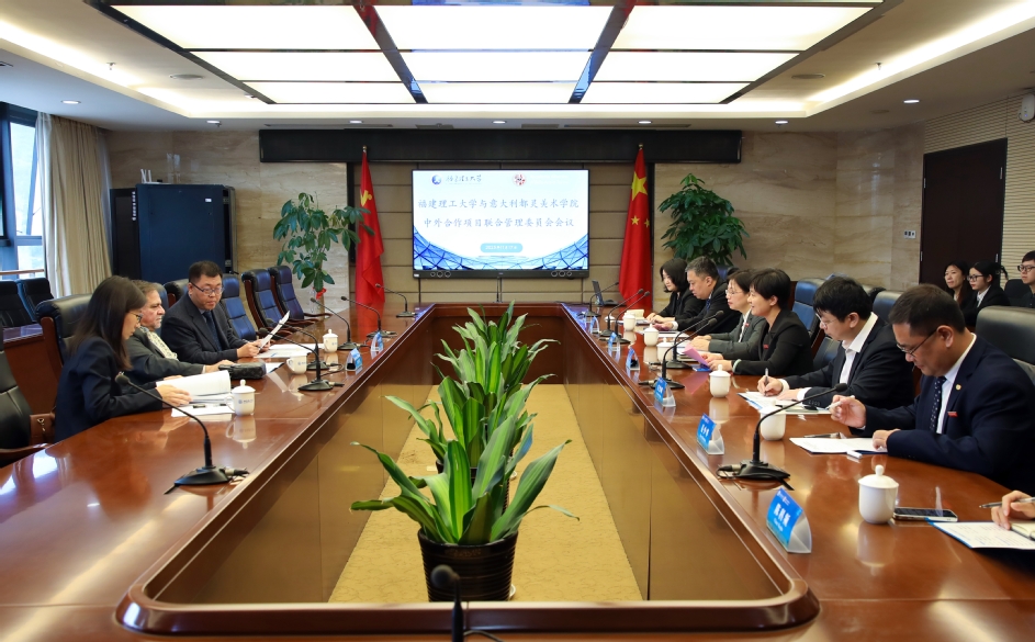 11月17日上午,福建理工大学与意大利都灵美术学院中外合作办学项目联合管理委员会第一次会议在学校旗山校区行政楼第一会议室举行。福建理工大学校长韦建刚热情接待了都灵美术学院校长Salvatore Bitonti一行,副校长吴琛、联合管理委员会成员单位负责人参加会议。