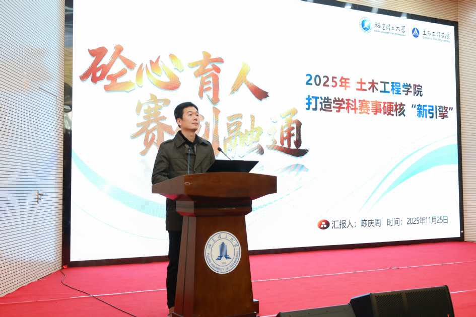 会上,创新创业工作先进单位代表土木工程学院,优秀项目指导教师杨宇、祁开龙代表分别作了典型经验发言。学工部负责人总结了2025年度创新创业工作,并围绕提高认识站位、强化组织协同、落实激励政策、精心培育项目等关键环节,对2026年中国国际大学生创新大赛的备战工作作了部署说明。