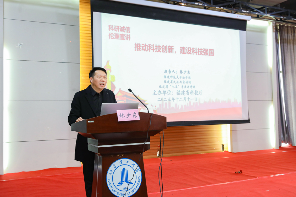 12月12日,福建省科技厅科研诚信政策宣讲活动走进我校,省科技厅科研诚信政策宣讲团主讲、福建师范大学副教授林少东作主题宣讲。副校长刘国买,省科技厅监督处、机关党委有关人员,学校科研处、纪检监察室负责人及教师代表参加交流活动。