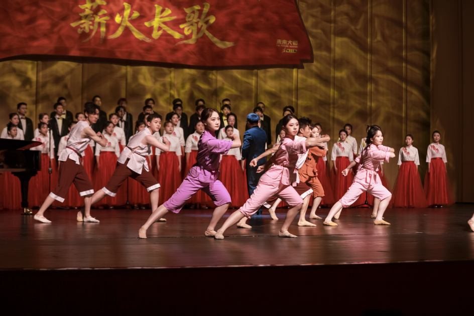音乐会在古筝齐奏《日出东方》的乐声中拉开序幕。《黄河大合唱》《弹起我心爱的土琵琶》等经典抗战题材作品,以激昂旋律回溯民族救亡图存的峥嵘岁月,讴歌中华儿女众志成城抵御外侮的壮烈史诗。《钢铁洪流进行曲》《爱国之恋》《如愿》《我爱你中国》等一组新时代曲目,以宏大的爱国主题表达,展现了新时代青年在实现中华民族伟大复兴历史进程中的使命担当。