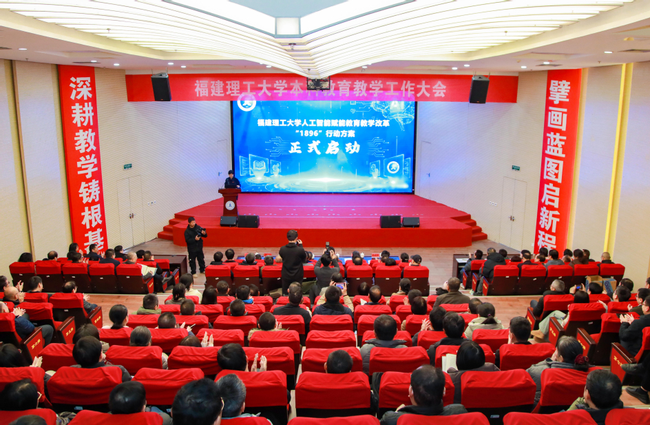 大会期间举行了《福建理工大学人工智能赋能教育教学改革“1896”行动方案》启动仪式。教务处负责人围绕“1条主线、8个维度、9项举措、6个100”,对该行动方案的具体内容进行了介绍说明。